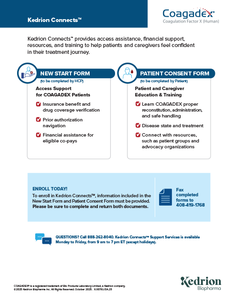 As the maker of COAGADEX, Kedrion is here to support you and your patients.